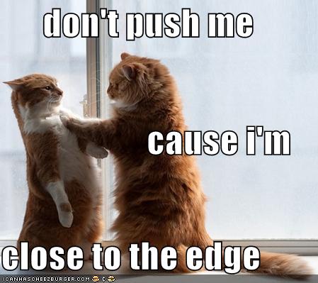 Don T Push Me Cause I M Close To The Edge I M Tryin Not To Lose My Bread Lolcats Lol Cat Memes Funny Cats Funny Cat Pictures With Words